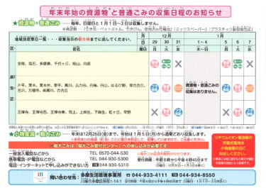 回覧 令和7年12月 表紙掲載合計 5ページ 各回覧の全ページをご覧になりたい方はブロック委員に確認ください (抜粋版) 1,年末年始資源ごみと普通ごみの収集日程のお知らせ(川崎市多摩生活環境事業所) 2,プラスチックの分別が簡単になります(川崎市より) 3,高齢者 のSOSネームプリント ご存じ […]