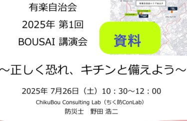 令和7年(2025年)12月13日第2回防災講演会 資料(PDF) ※事前資料希望の方は下記黄色文字列をクリックください、 資料の閲覧には講演会参加者及び自治会員へ配布の【パスワード】が必要です 有楽自治会2025:第2回BOUSAI 講座:資料