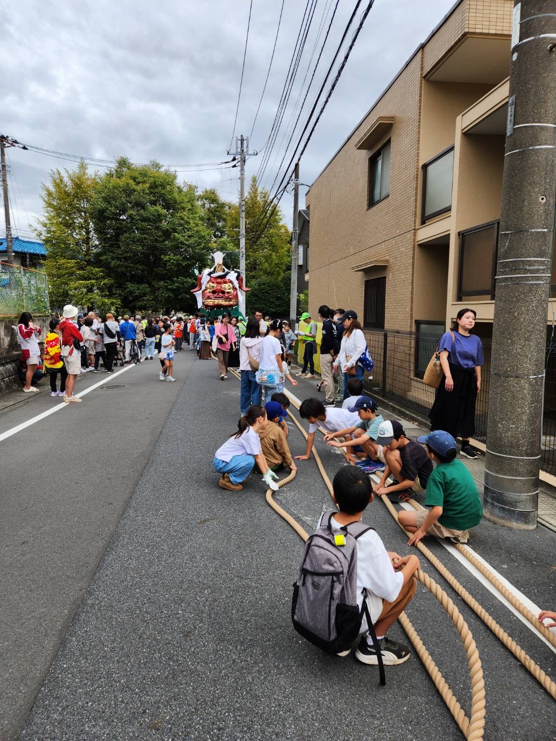 19日当日は朝10時前に千代ヶ丘2丁目の久敬社塾に多くの子供たちが集まり曳山の安全を祈願してスタートしました