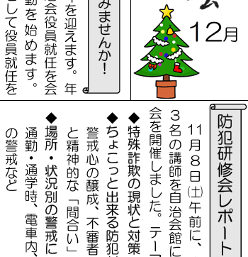 ◆自治会だより全体をスマートフォン/パソコンで閲覧したい方は、下記青色『自治会だより12月号』PDFをクリックしてください、プリントも出来ます